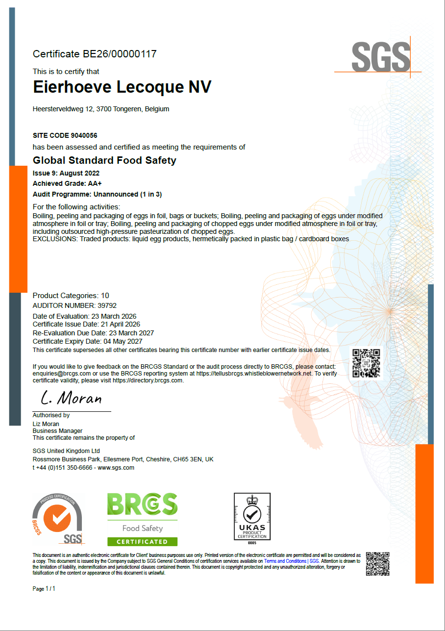 Al meer dan 50 jaar staat Lecoque eggs garant voor eiproducten van topkwaliteit voor industrie, groothandel en retail. Dagelijks vertrekken hardgekookte gepelde eieren en een uitgebreid afgeleid gamma hiervan naar verschillende Europese afzetmarkten zoals België, Nederland, Frankrijk, Engeland, Duitsland en Scandinavië.