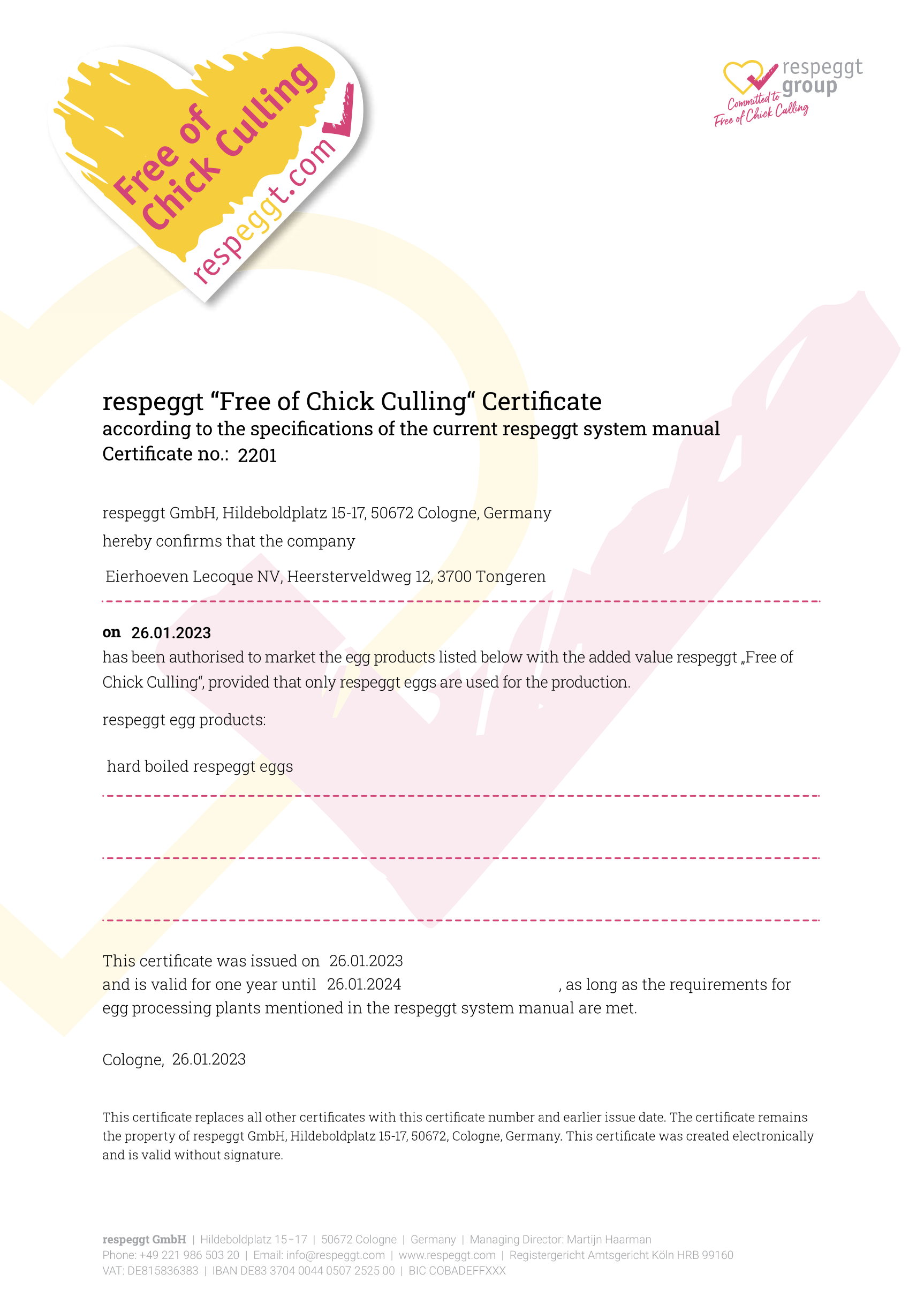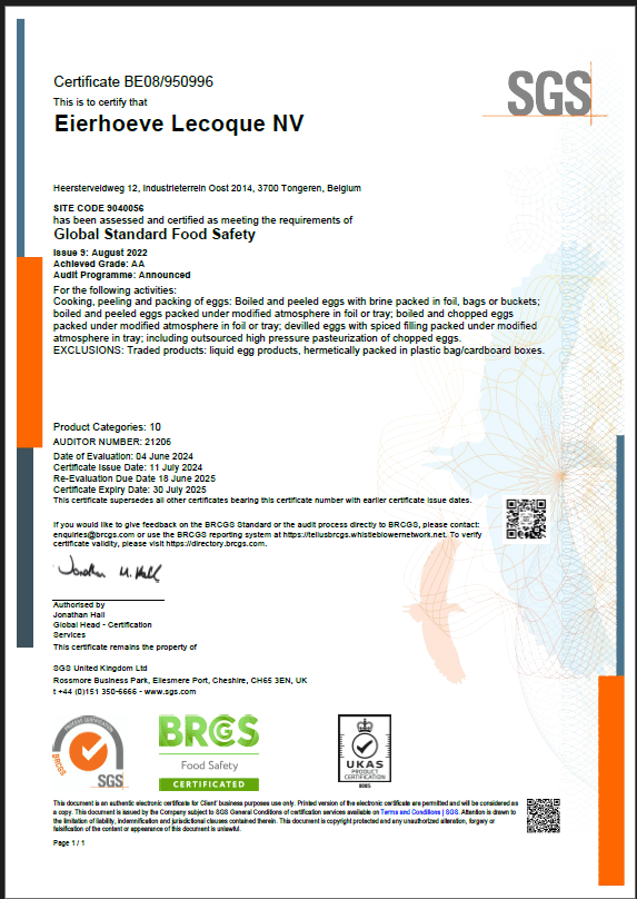 Al meer dan 50 jaar staat Lecoque eggs garant voor eiproducten van topkwaliteit voor industrie, groothandel en retail. Dagelijks vertrekken hardgekookte gepelde eieren en een uitgebreid afgeleid gamma hiervan naar verschillende Europese afzetmarkten zoals België, Nederland, Frankrijk, Engeland, Duitsland en Scandinavië.